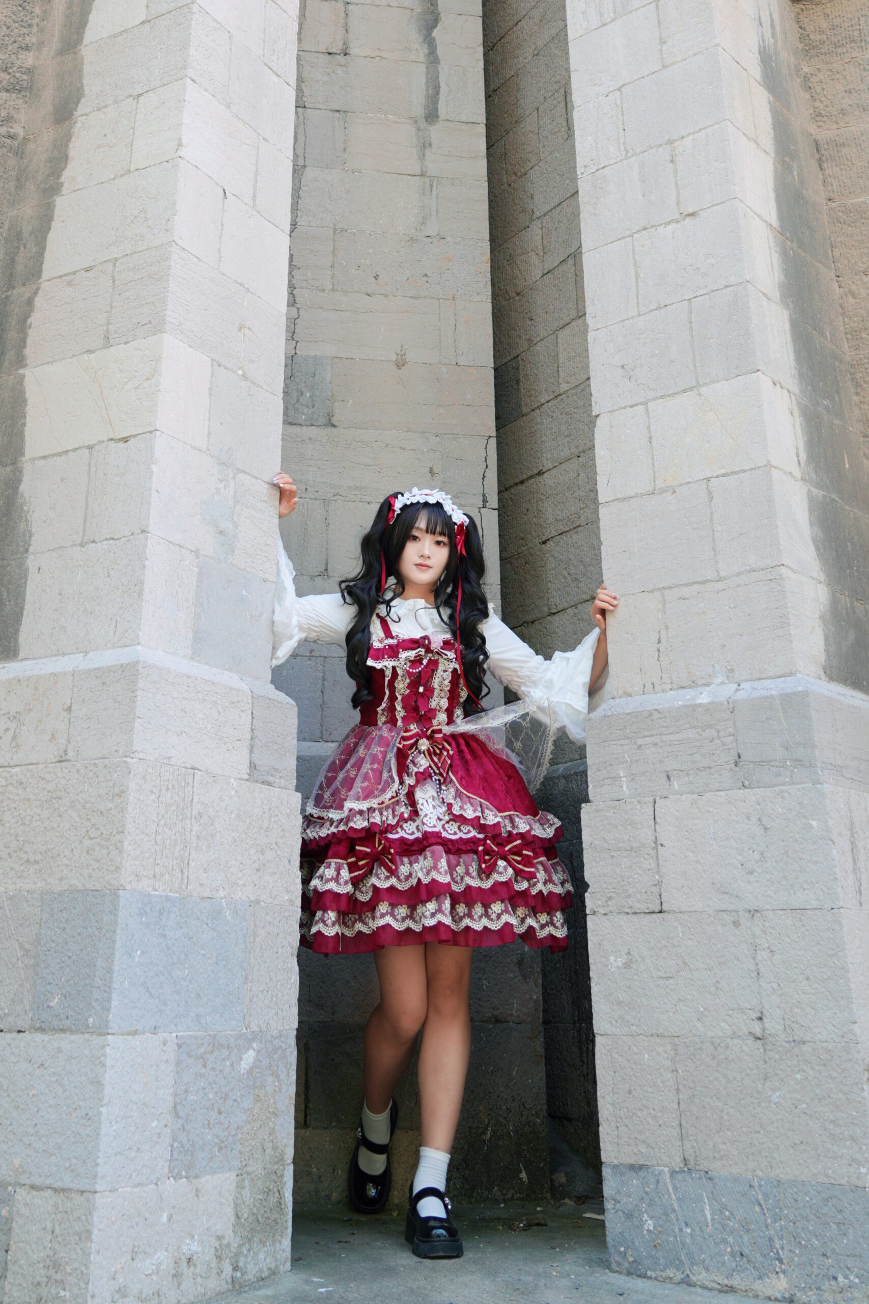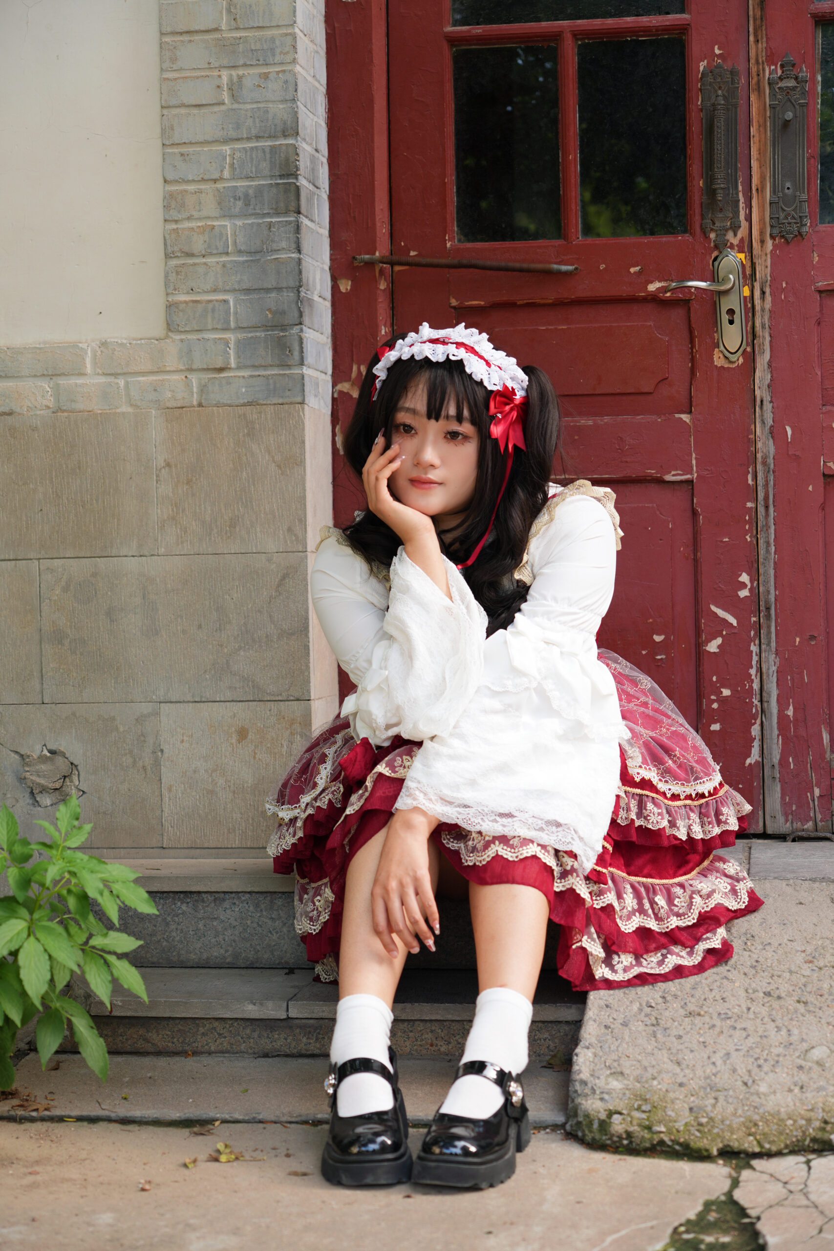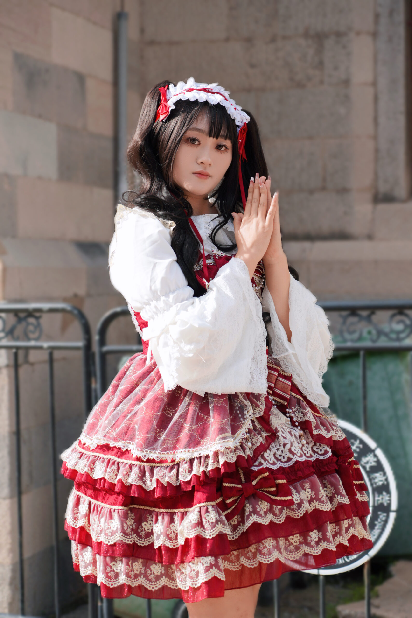 绯红与蕾丝交织成乐章,定格下少女华丽而庄重的瞬间。 出镜: