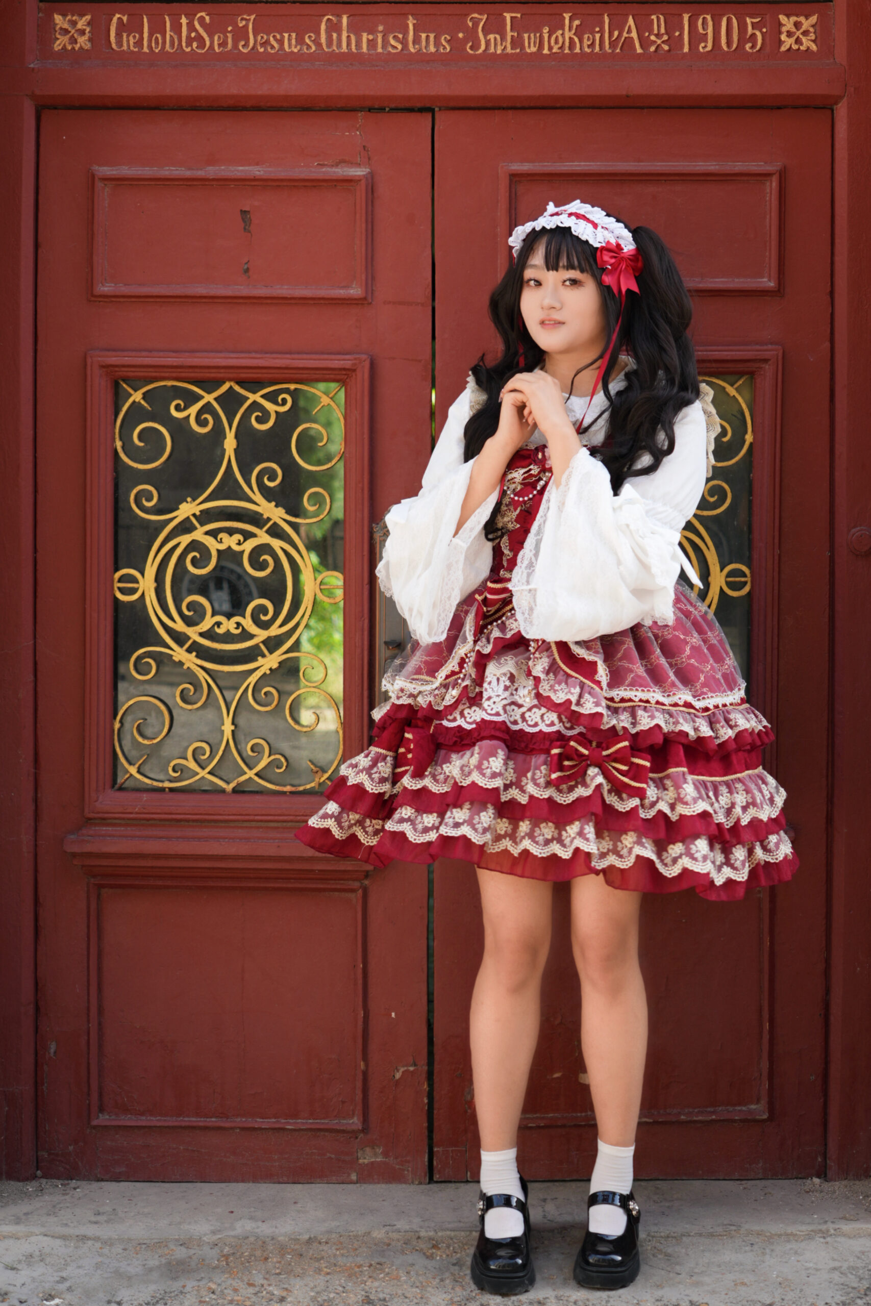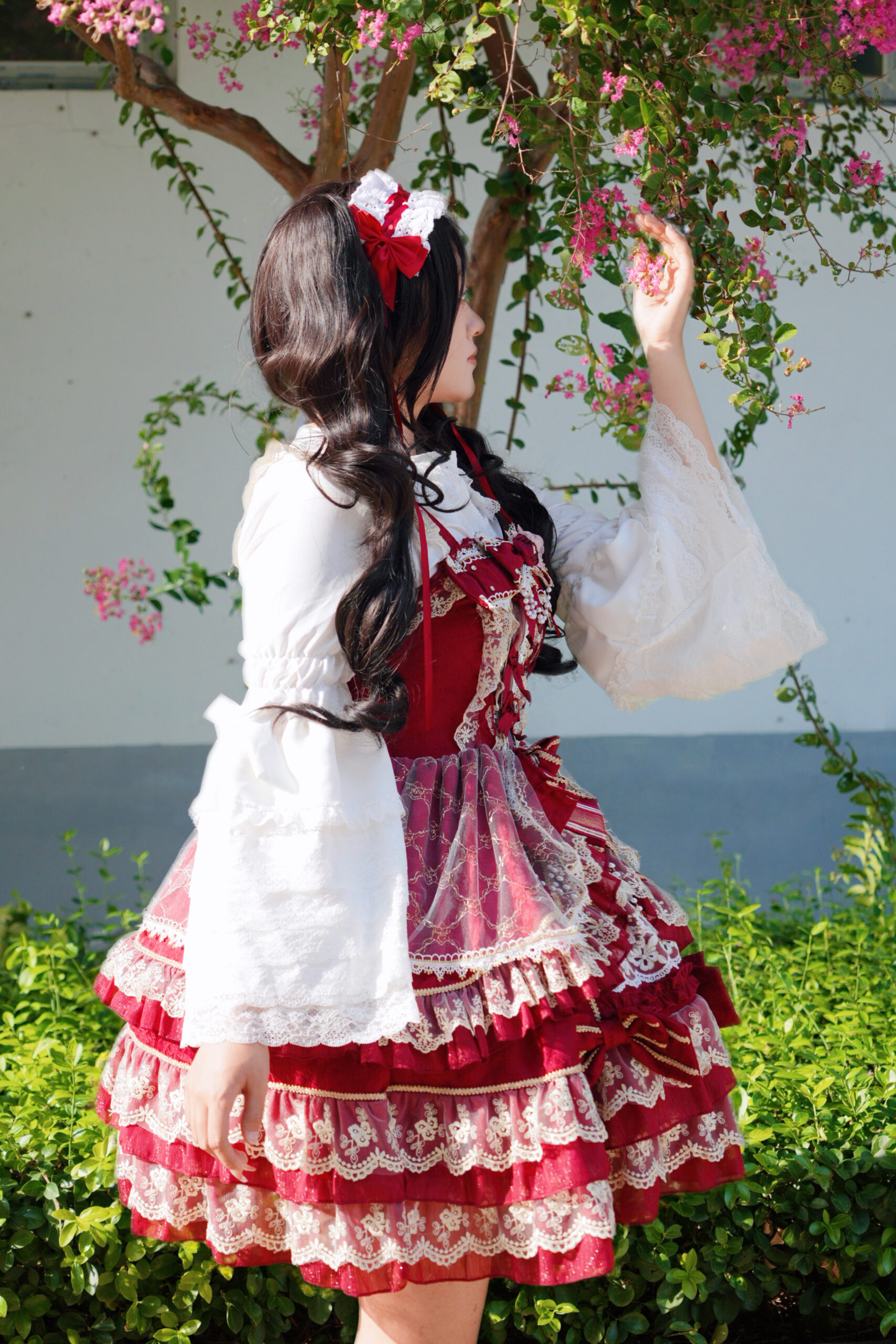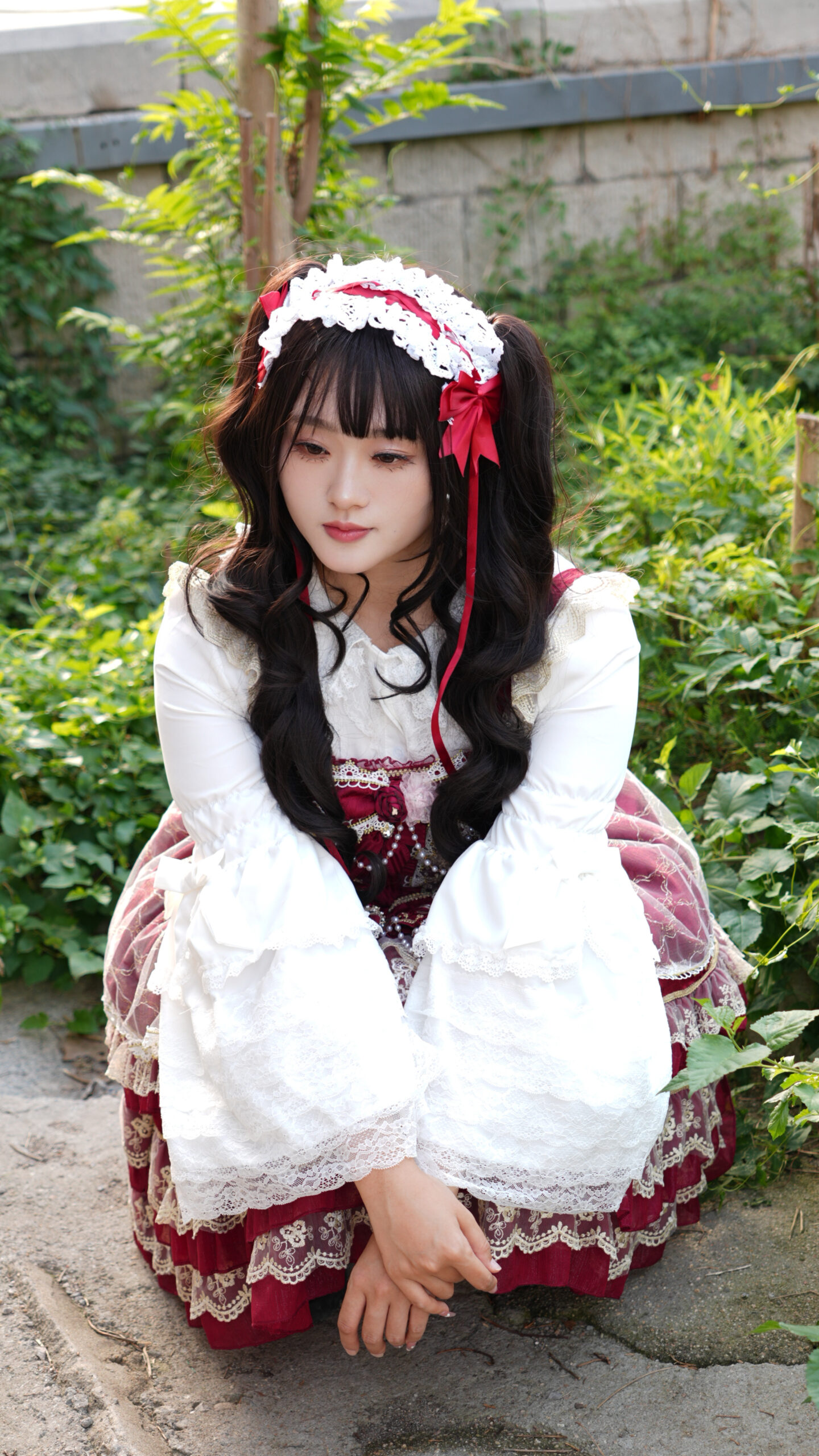绯红与蕾丝交织成乐章,定格下少女华丽而庄重的瞬间。 出镜: